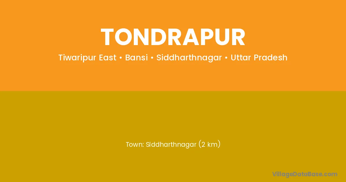Siddharthnagar (2 km) is the nearest town to Tondrapur village for major economic activities and is located approximately 2 km away.