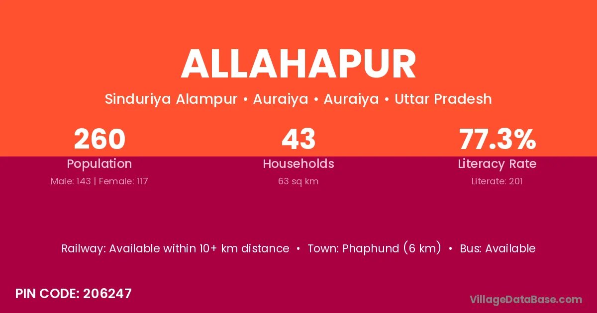 Allahapur village has a total population of 958 people, of which 499 are males and 459 are females.
