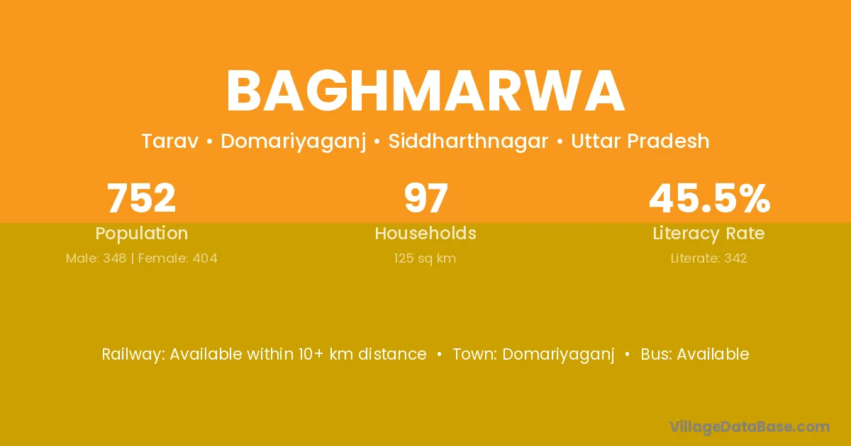 Baghmarwa village has a total population of 752 people, of which 348 are males and 404 are females.
