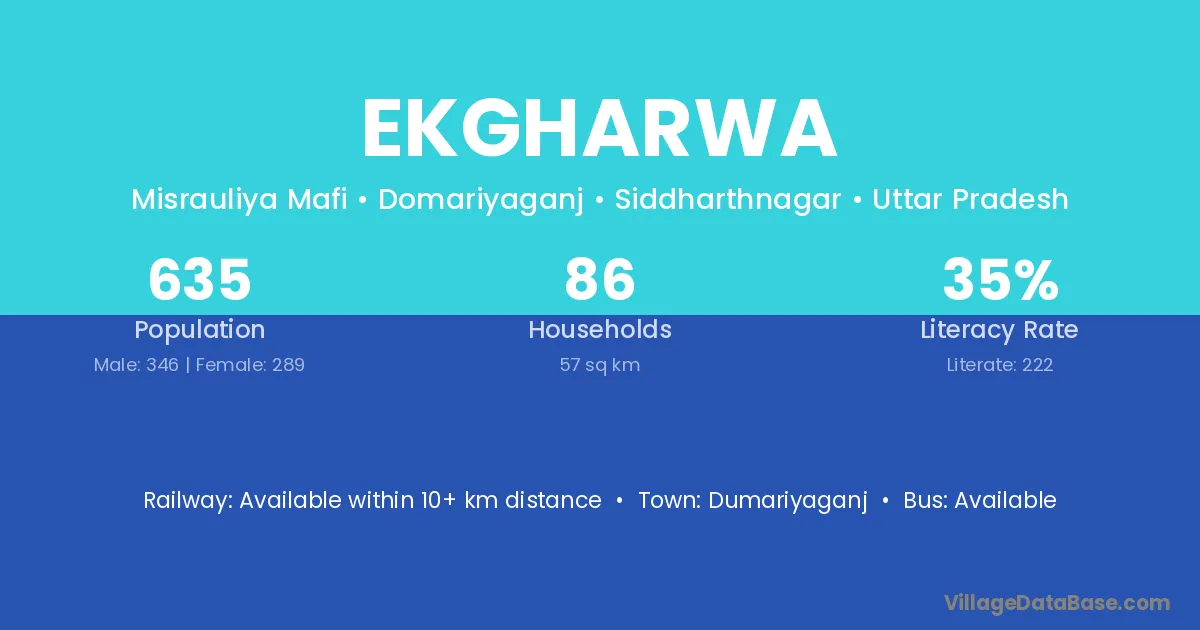 Ekgharwa village has a total population of 635 people, of which 346 are males and 289 are females.