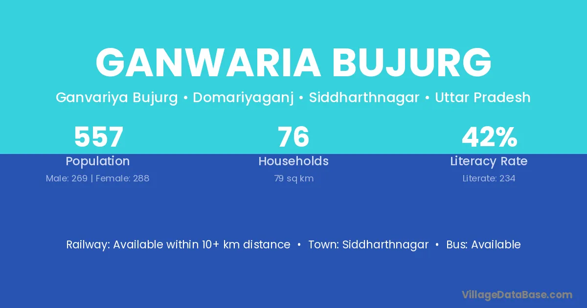 Siddharthnagar is the nearest town to Ganwaria Bujurg village for major economic activities