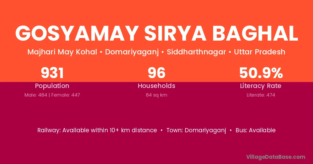 Gosyamay Sirya Baghal village has a total population of 931 people, of which 484 are males and 447 are females.
