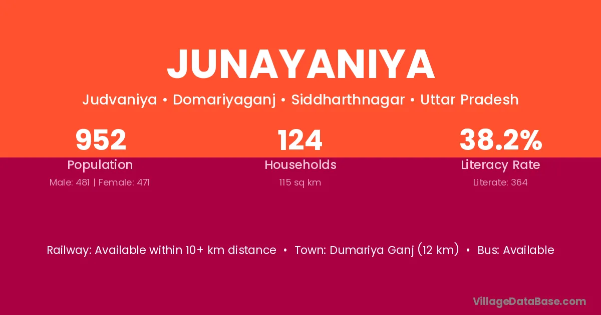 Dumariya Ganj (12 km) is the nearest town to Junayaniya village for major economic activities and is located approximately 12 km away.