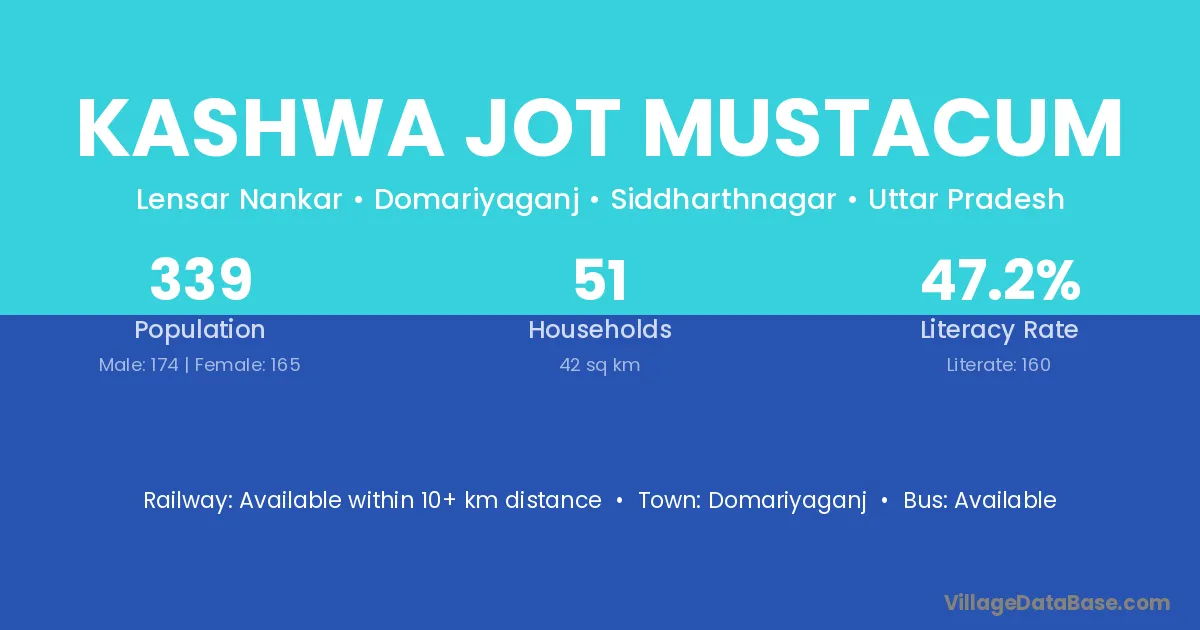 Kashwa Jot Mustacum village is located in the Domariyaganj Tehsil of the Siddharthnagar district in Uttar Pradesh .