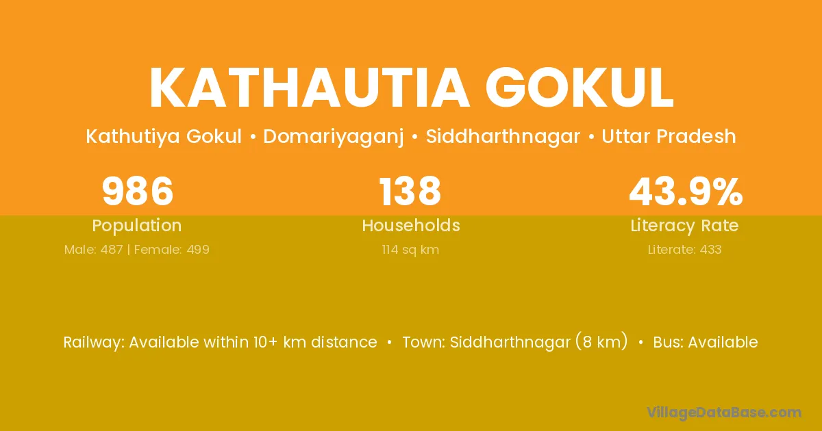 Kathautia Gokul village has a total population of 986 people, of which 487 are males and 499 are females.