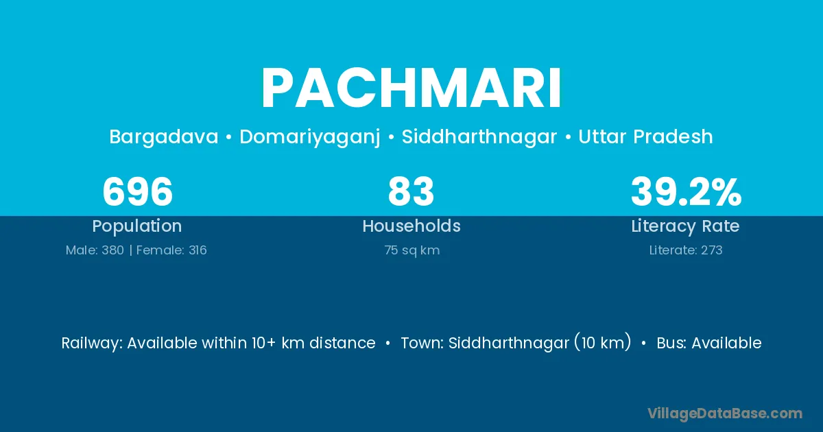 Siddharthnagar (10 km) is the nearest town to Pachmari village for major economic activities and is located approximately 10 km away.