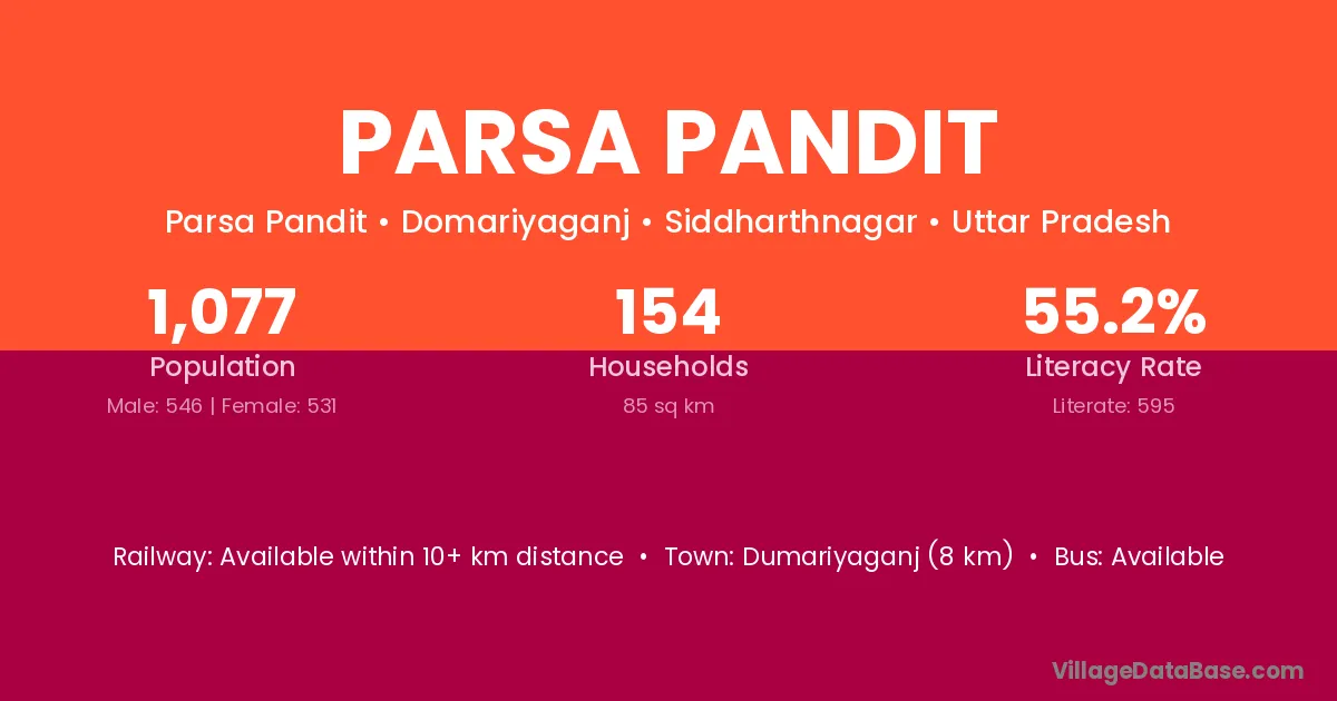 Dumariyaganj (8 km) is the nearest town to Parsa Pandit village for major economic activities and is located approximately 8 km away.