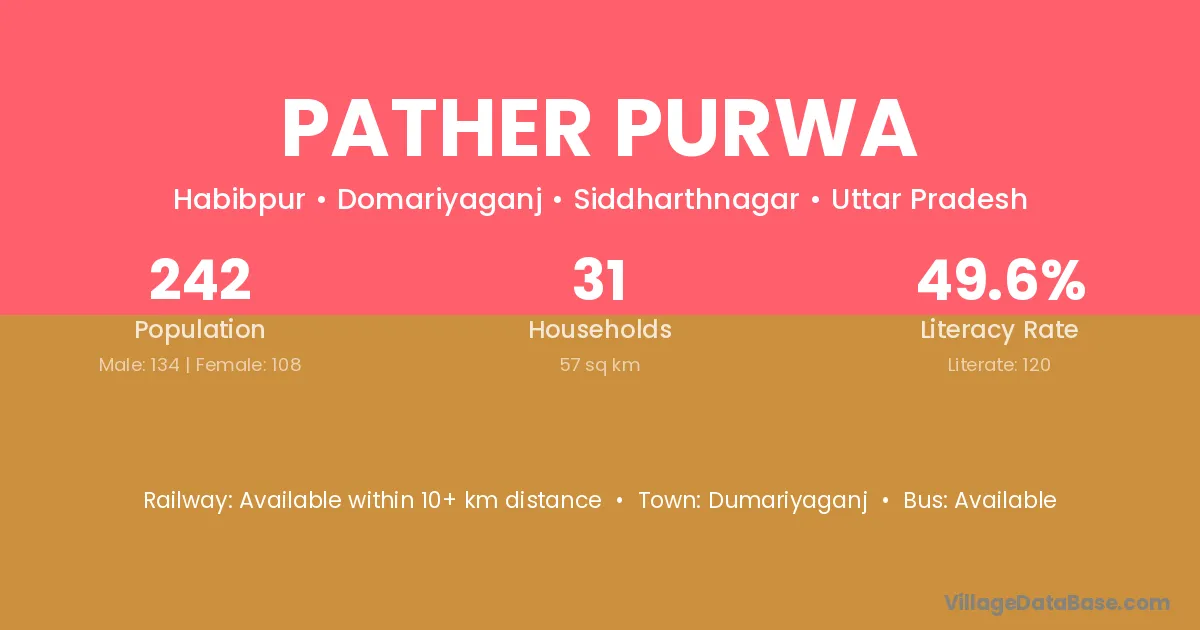 Pather Purwa village has a total population of 242 people, of which 134 are males and 108 are females.