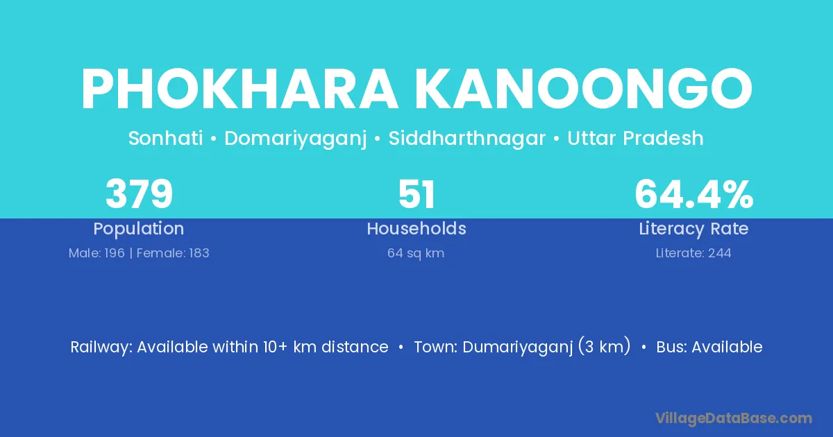 Phokhara Kanoongo village has a total population of 379 people, of which 196 are males and 183 are females.