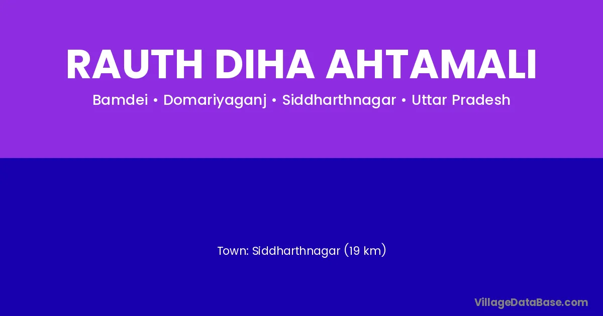 Siddharthnagar (19 km) is the nearest town to Rauth Diha Ahtamali village for major economic activities and is located approximately 19 km away.