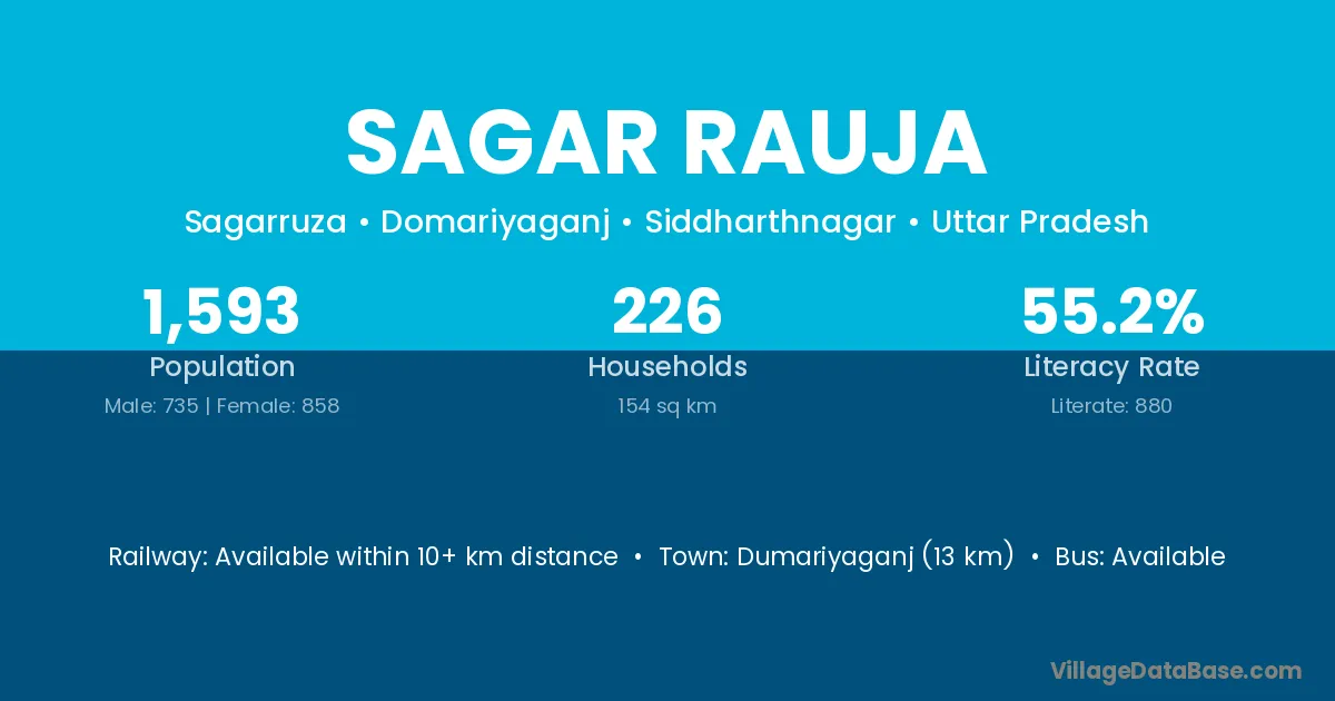 Dumariyaganj (13 km) is the nearest town to Sagar Rauja village for major economic activities and is located approximately 13 km away.