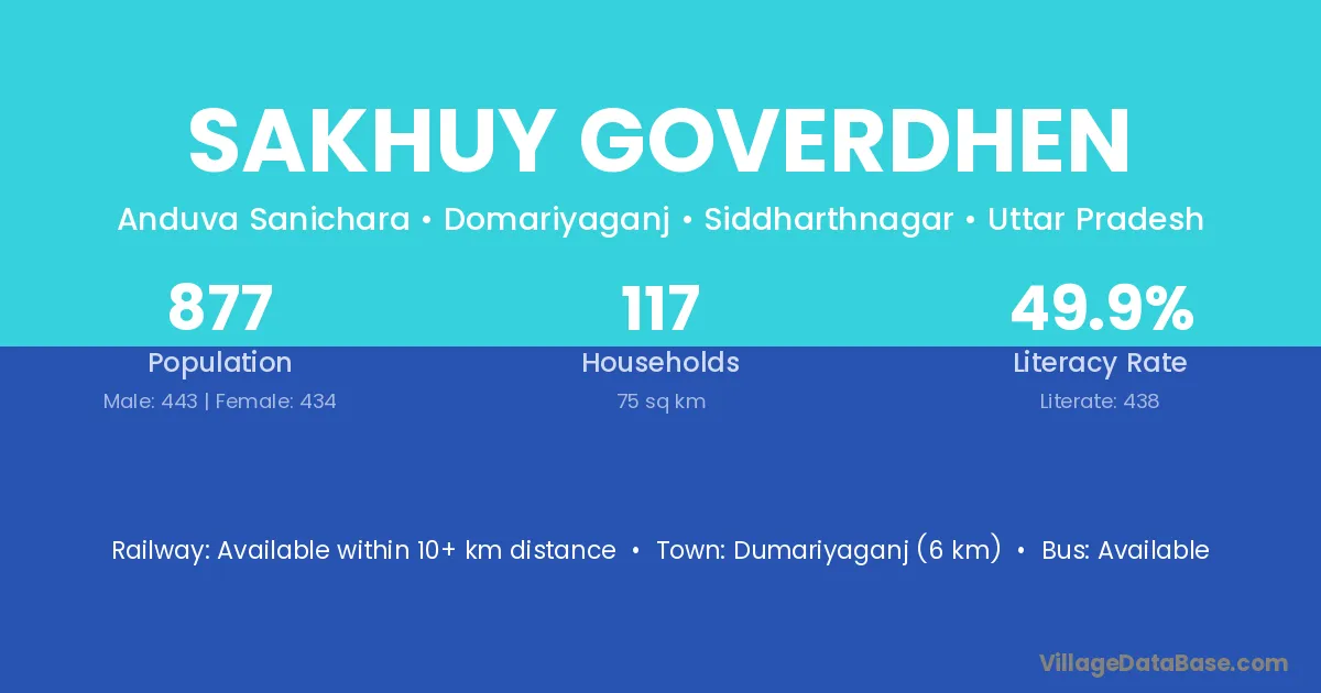 Dumariyaganj (6 km) is the nearest town to Sakhuy Goverdhen village for major economic activities and is located approximately 6 km away.