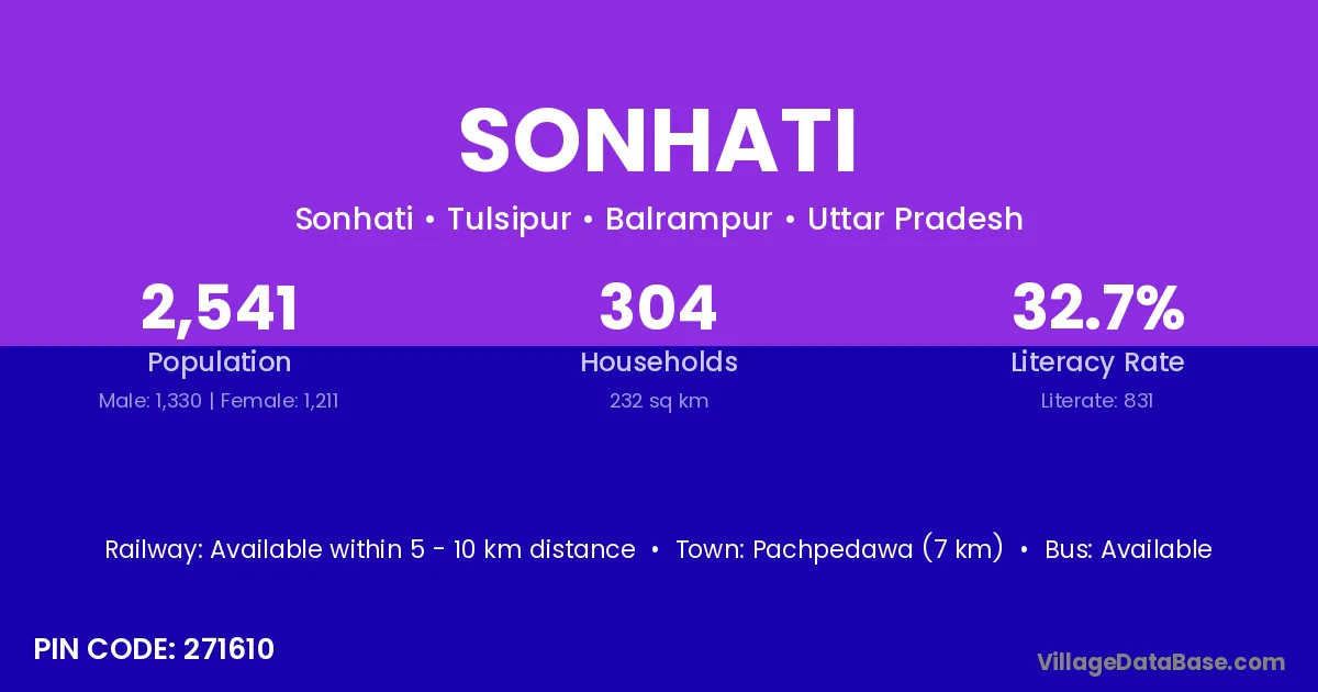 Sonhati village has a total population of 975 people, of which 491 are males and 484 are females.