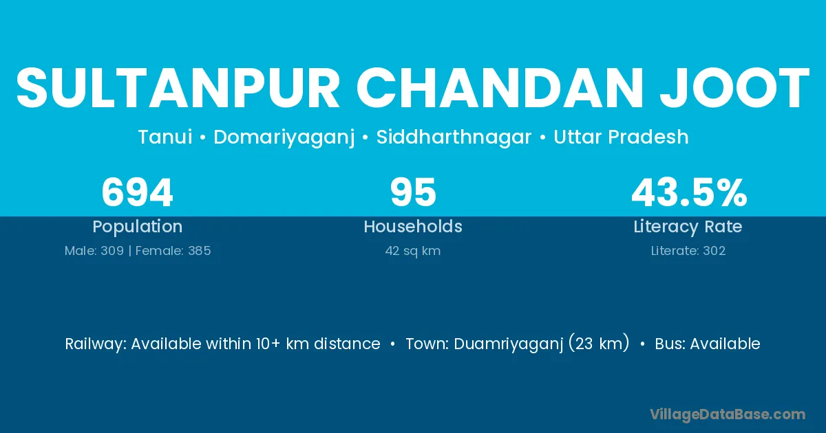 Sultanpur Chandan Joot village has a total population of 694 people, of which 309 are males and 385 are females.
