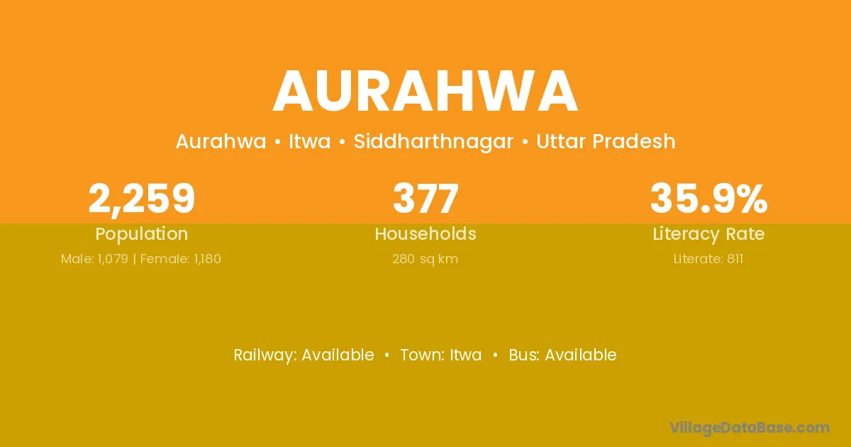 Aurahwa village has a total population of 2,259 people, of which 1,079 are males and 1,180 are females.