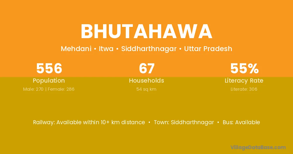 Bhutahawa village has a total population of 556 people, of which 270 are males and 286 are females.