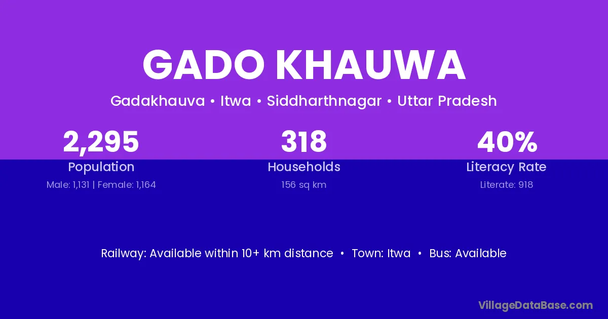 Gado Khauwa village has a total population of 2,295 people, of which 1,131 are males and 1,164 are females.