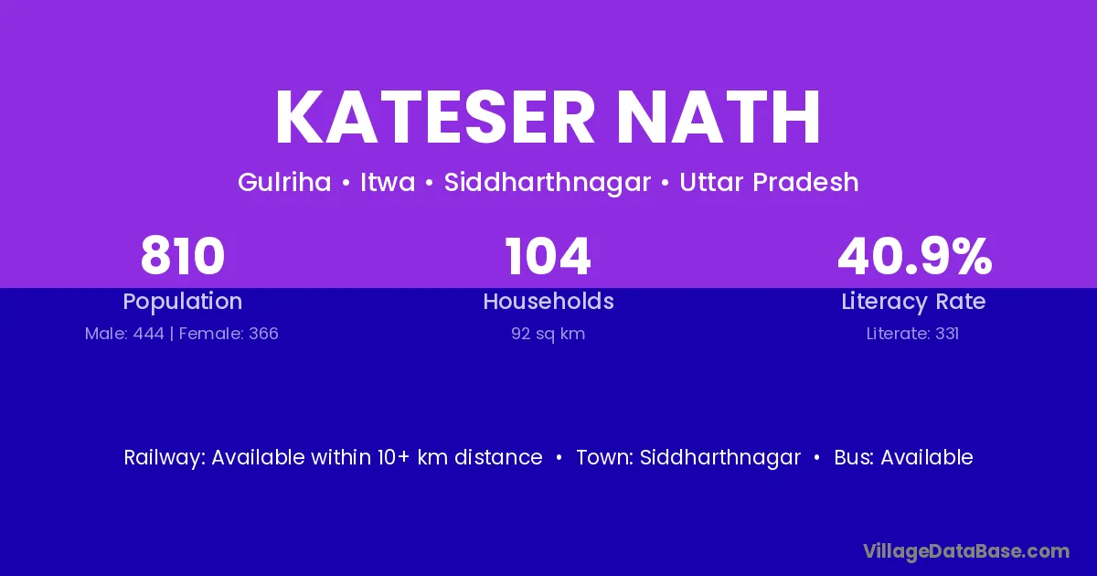 Siddharthnagar is the nearest town to Kateser Nath village for major economic activities