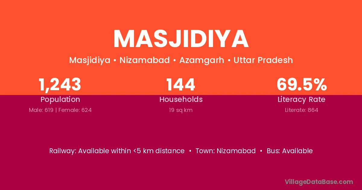 Masjidiya village has a total population of 1,240 people, of which 632 are males and 608 are females.