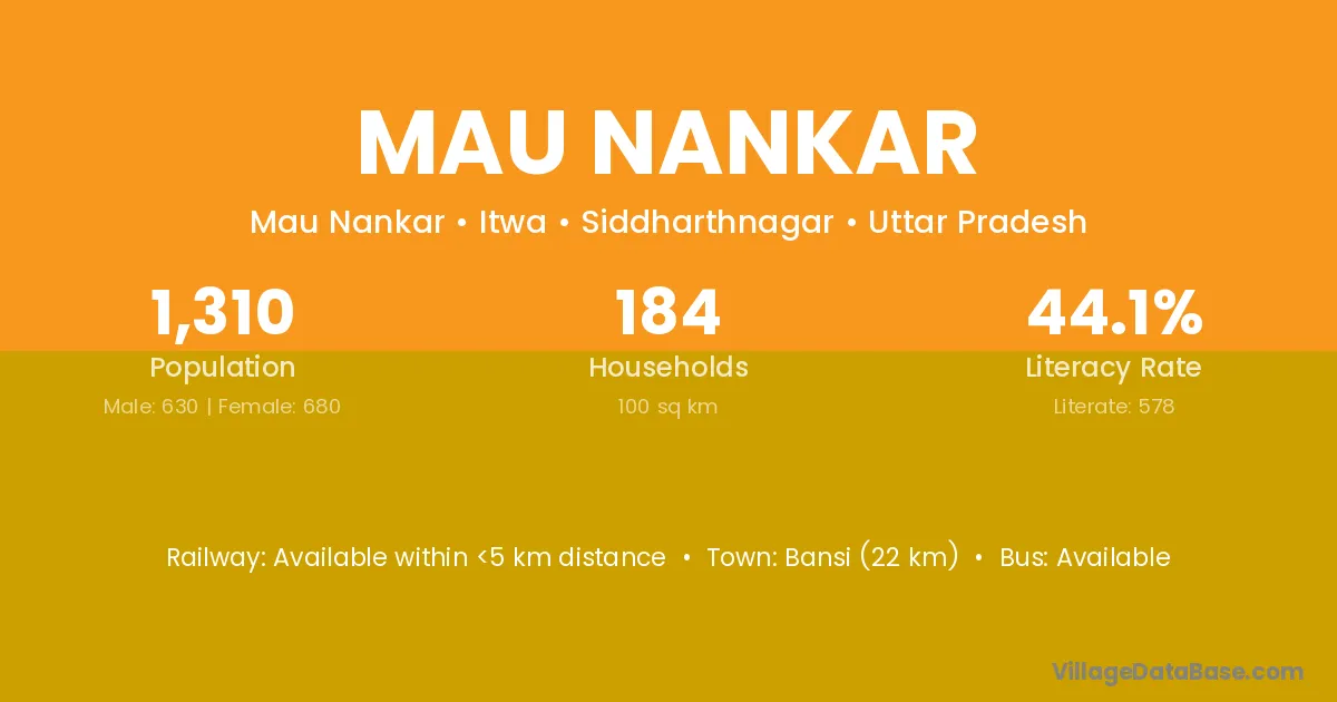 Bansi (22 km) is the nearest town to Mau Nankar village for major economic activities and is located approximately 22 km away.