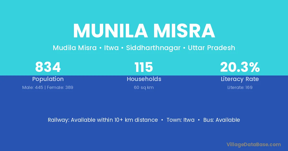 Itwa is the nearest town to Munila Misra village for major economic activities