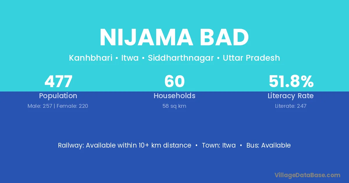 Itwa is the nearest town to Nijama Bad village for major economic activities