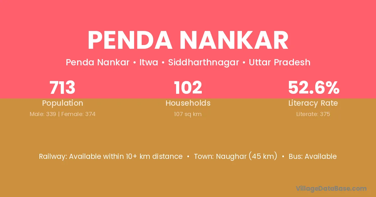 Penda Nankar village is located in the Itwa Tehsil of the Siddharthnagar district in Uttar Pradesh .