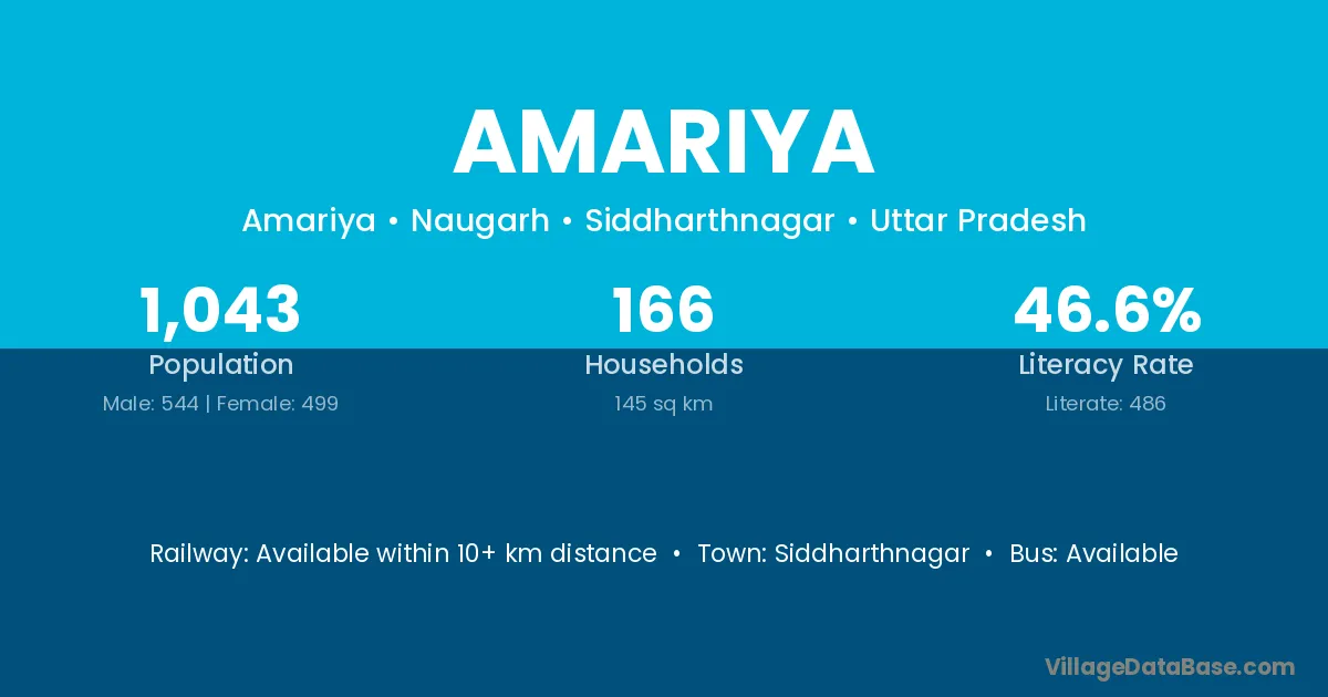 Siddharthnagar is the nearest town to Amariya village for major economic activities