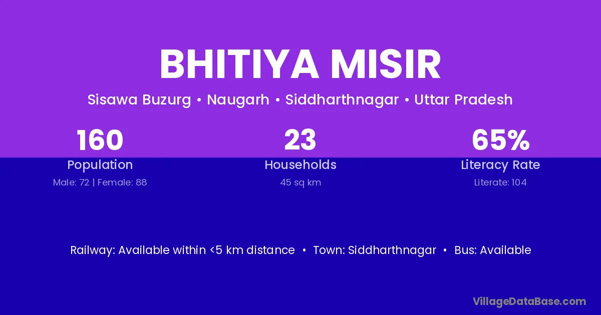 Siddharthnagar is the nearest town to Bhitiya Misir village for major economic activities