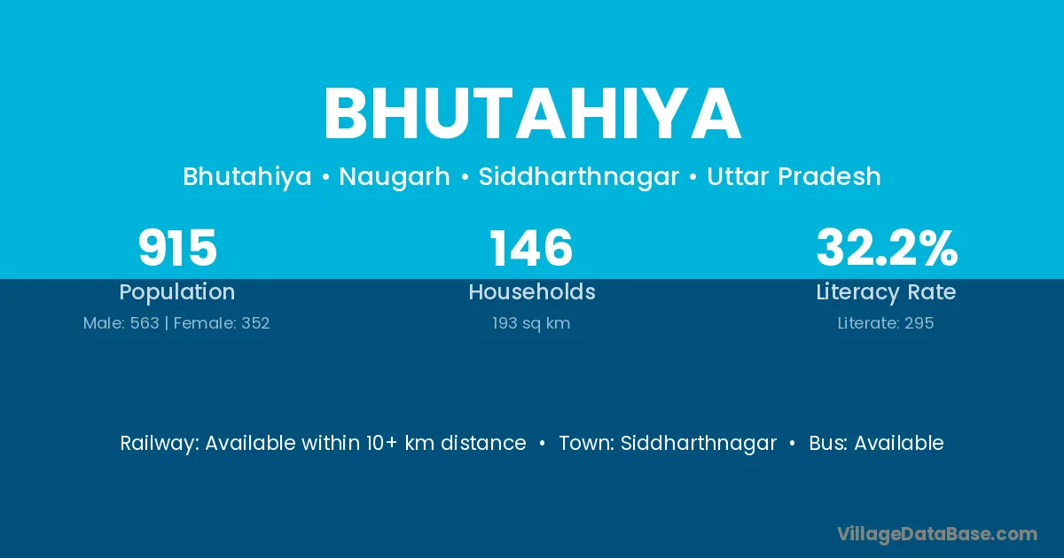 Siddharthnagar is the nearest town to Bhutahiya village for major economic activities
