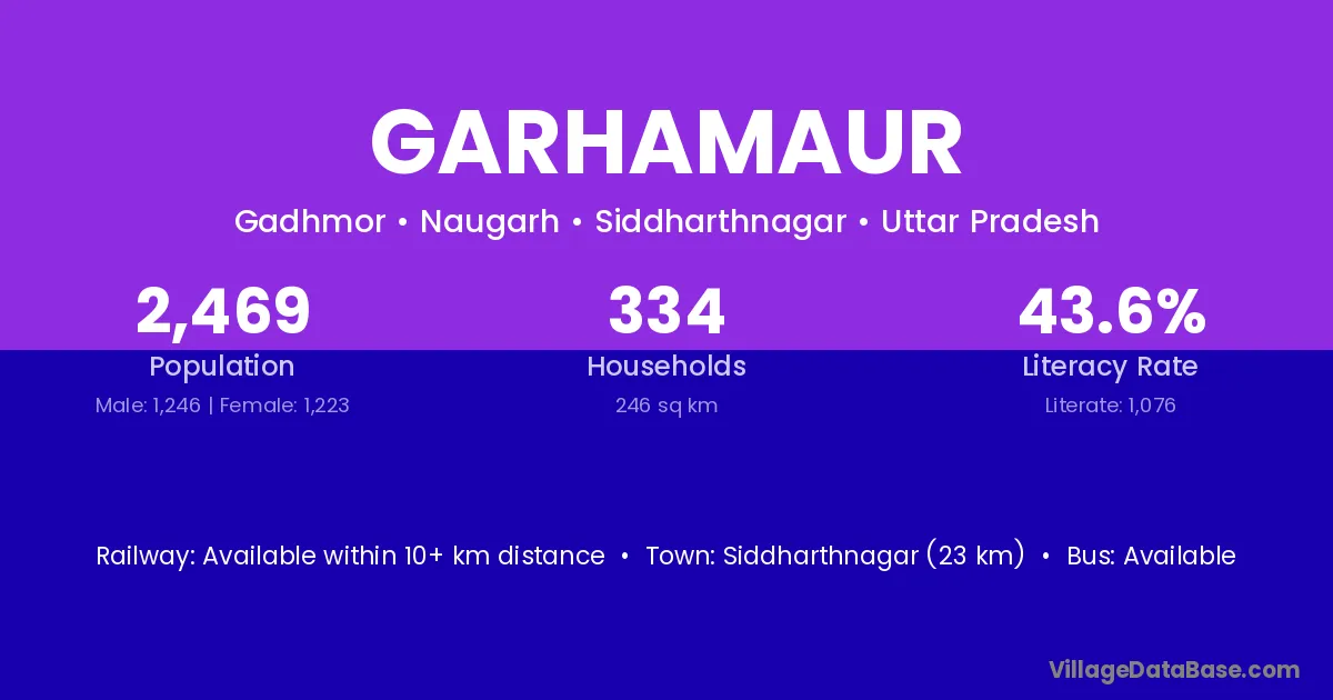 Siddharthnagar (23 km) is the nearest town to Garhamaur village for major economic activities and is located approximately 23 km away.