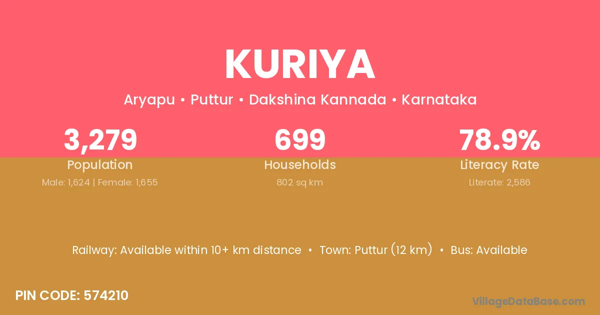 Kuriya village has a total population of 1,188 people, of which 622 are males and 566 are females.