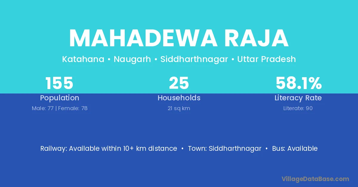 Siddharthnagar is the nearest town to Mahadewa Raja village for major economic activities