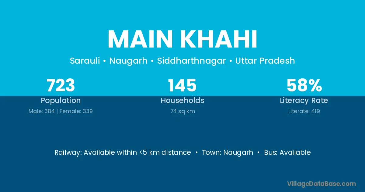 Main Khahi village has a total population of 723 people, of which 384 are males and 339 are females.
