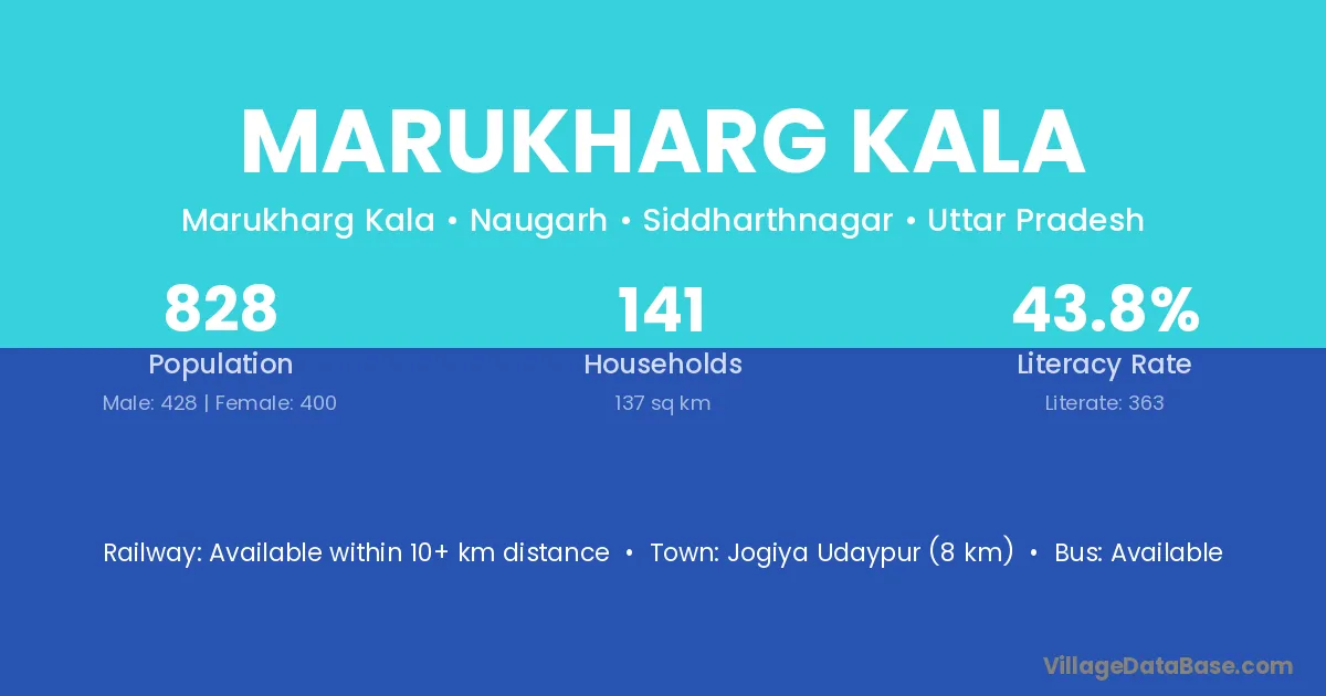 Jogiya Udaypur (8 km) is the nearest town to Marukharg Kala village for major economic activities and is located approximately 8 km away.
