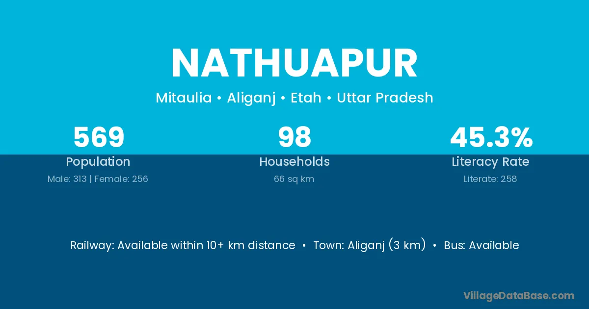 The literacy rate of Nathuapur village is 42.11%. Male literacy stands at 45.45% and female literacy at 37.50%.