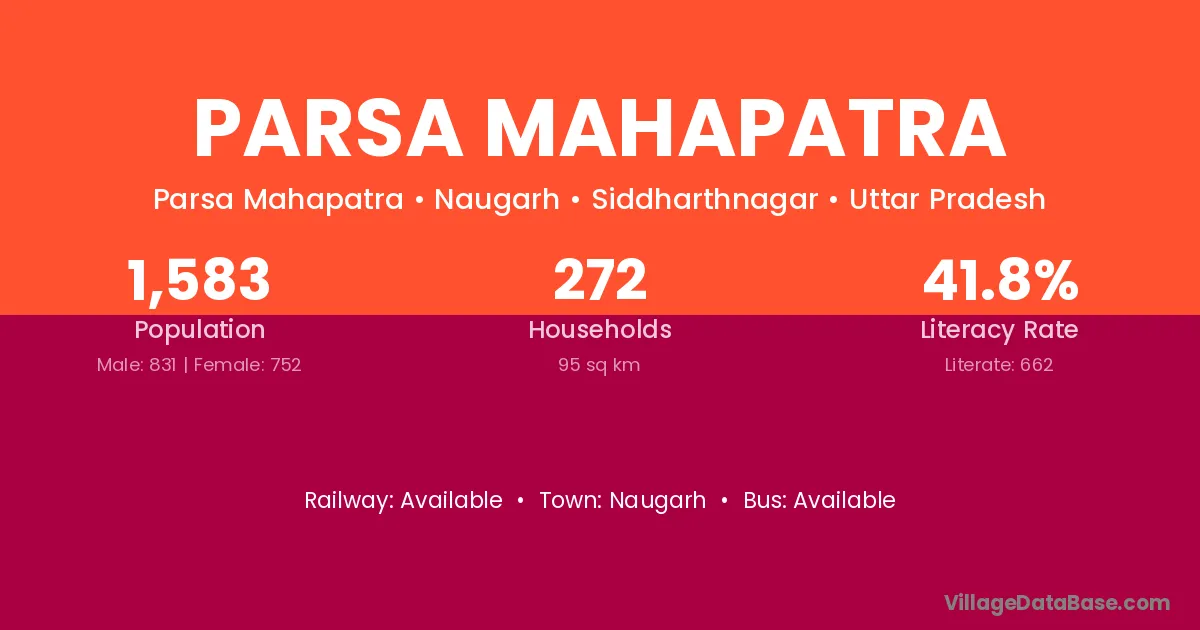 Parsa Mahapatra village has a total population of 1,583 people, of which 831 are males and 752 are females.
