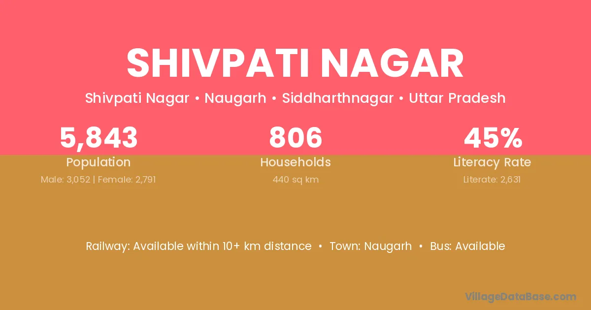 Shivpati Nagar village has a total population of 5,843 people, of which 3,052 are males and 2,791 are females.