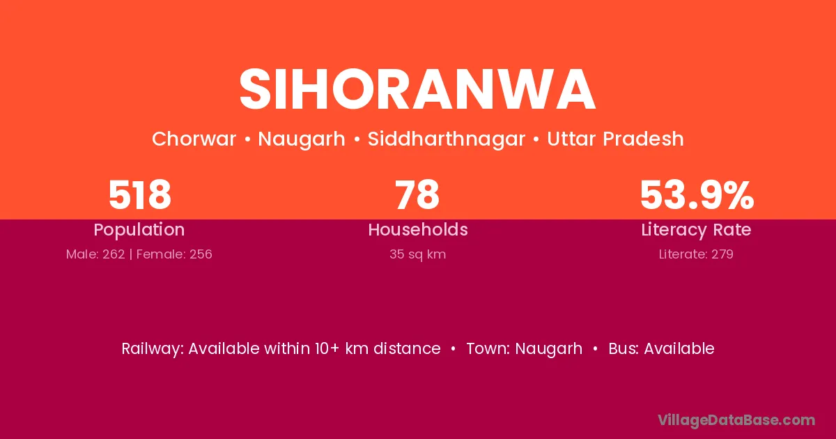 Sihoranwa village has a total population of 518 people, of which 262 are males and 256 are females.
