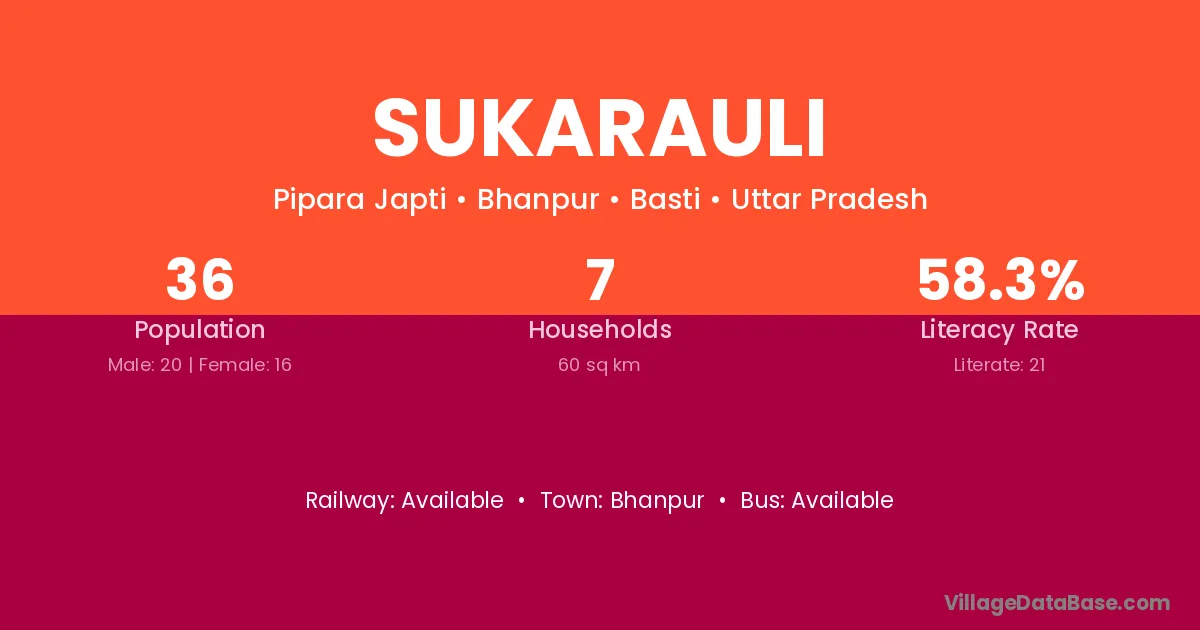 The literacy rate of Sukarauli village is 57.92%. Male literacy stands at 68.54% and female literacy at 49.56%.
