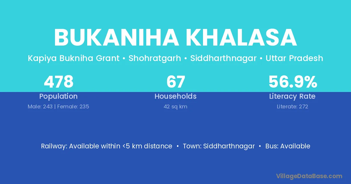 Siddharthnagar is the nearest town to Bukaniha Khalasa village for major economic activities