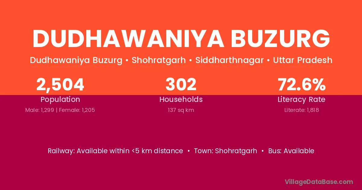 Shohratgarh is the nearest town to Dudhawaniya Buzurg village for major economic activities