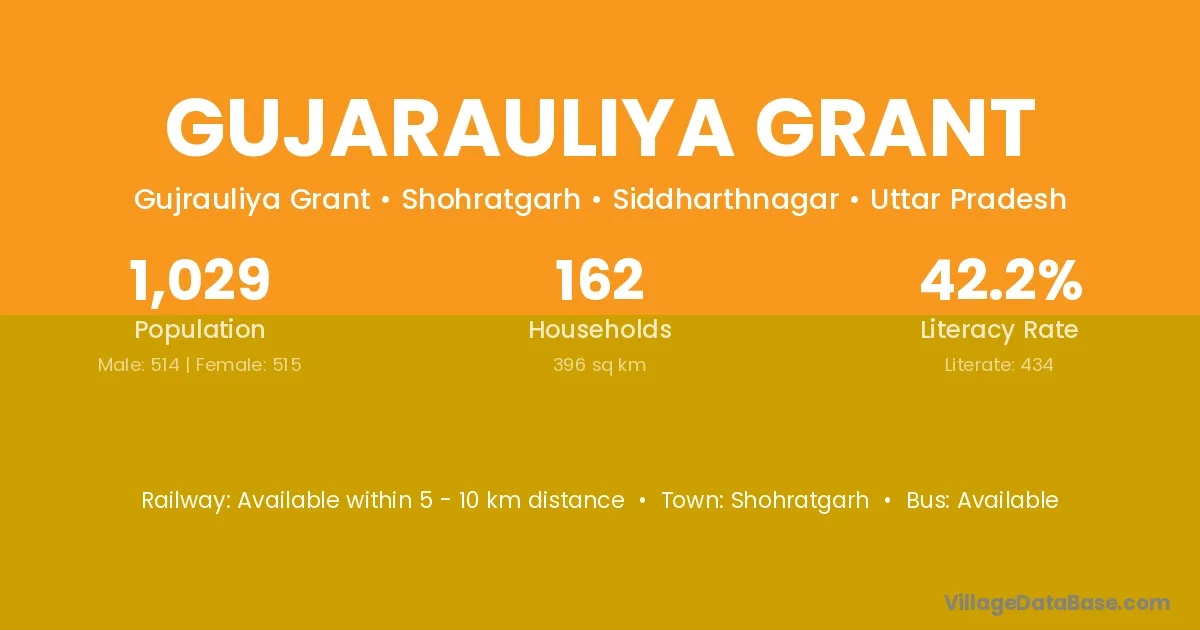 Gujarauliya Grant village has a total population of 1,029 people, of which 514 are males and 515 are females.