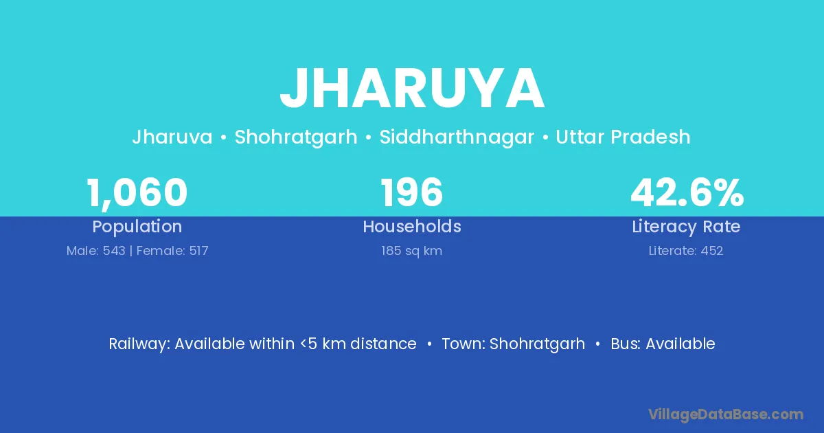 Jharuya village has a total population of 1,060 people, of which 543 are males and 517 are females.