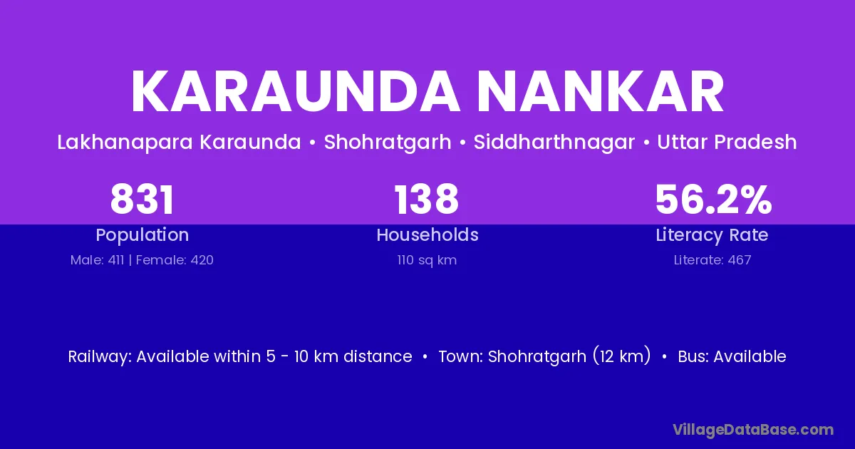 Shohratgarh (12 km) is the nearest town to Karaunda Nankar village for major economic activities and is located approximately 12 km away.