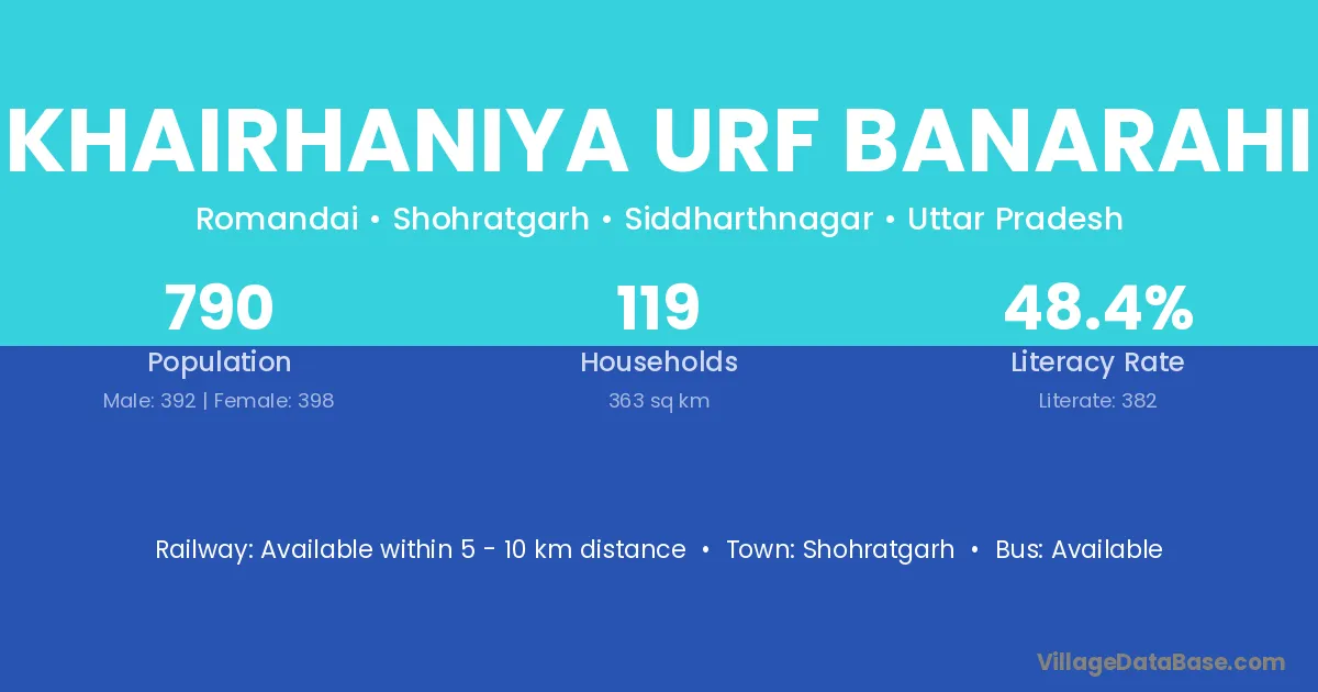 Khairhaniya Urf Banarahi village has a total population of 790 people, of which 392 are males and 398 are females.