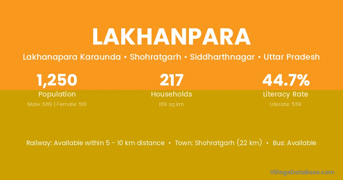 Shohratgarh (22 km) is the nearest town to Lakhanpara village for major economic activities and is located approximately 22 km away.