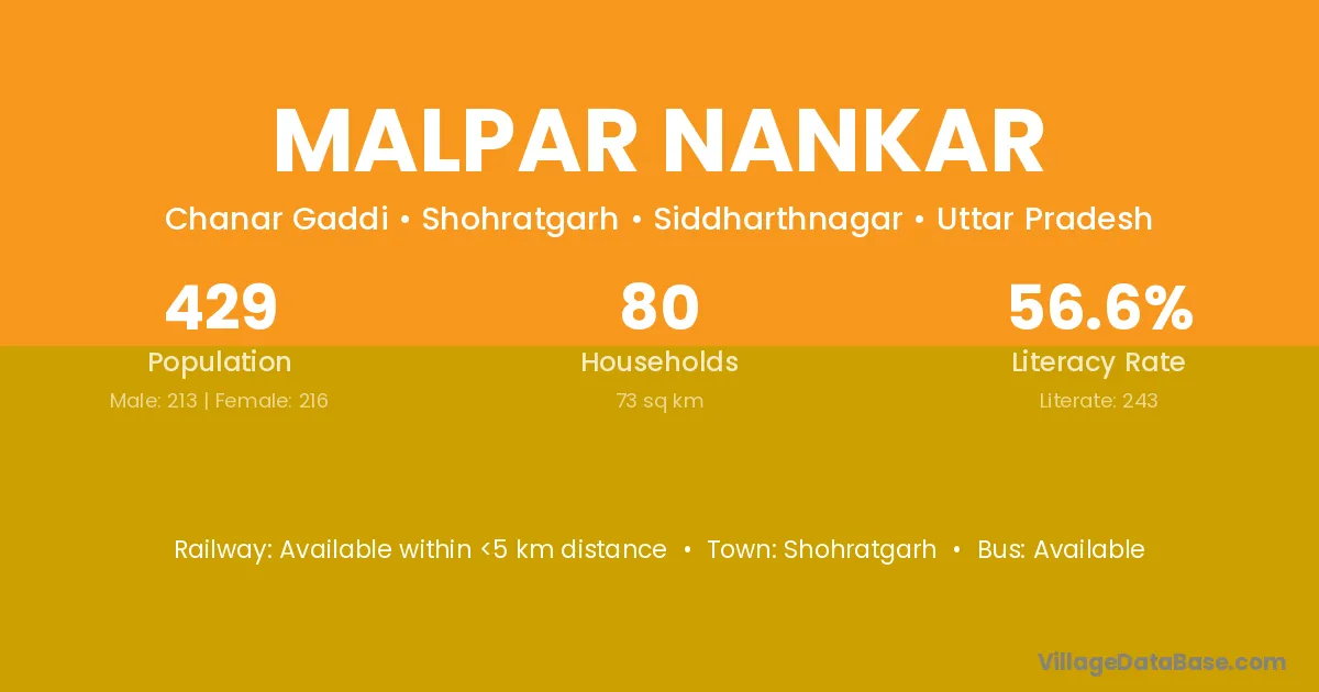 Shohratgarh is the nearest town to Malpar Nankar village for major economic activities