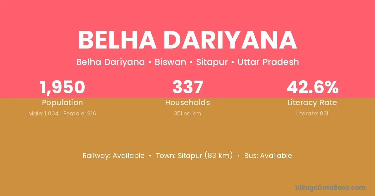 Sitapur (83 km) is the nearest town to Belha Dariyana village for major economic activities and is located approximately 83 km away.