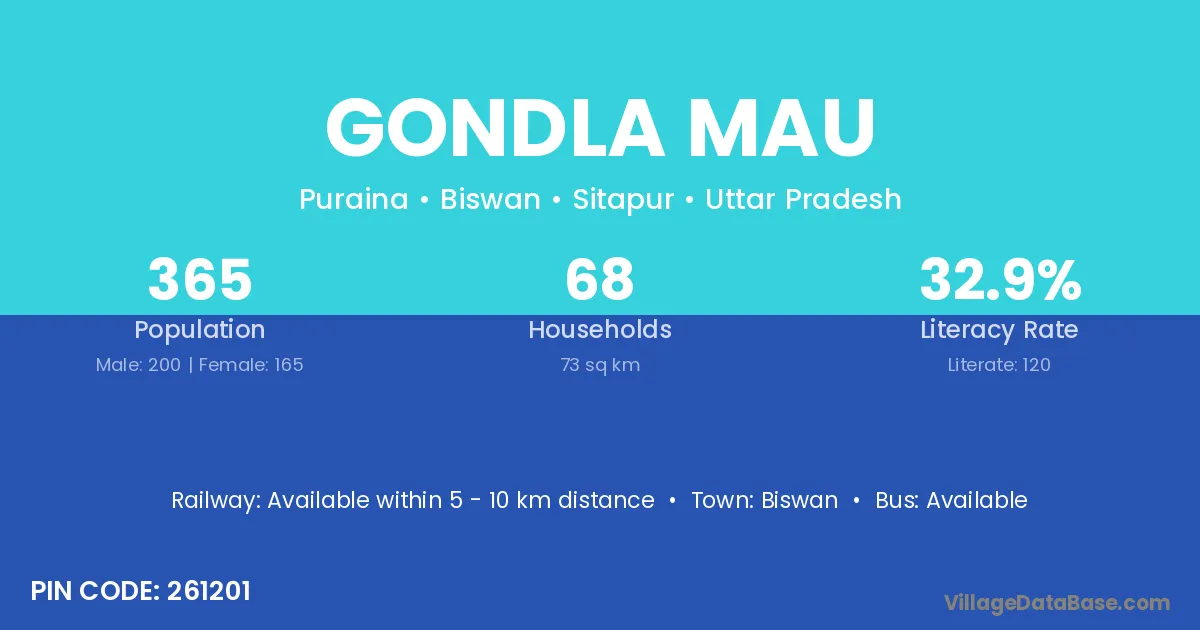 Biswan is the nearest town to Gondla Mau village for major economic activities